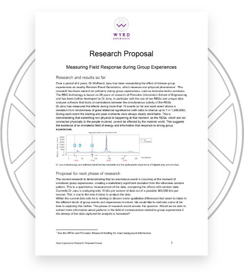 See here a number of Wyrd Research proposals that we are looking for funding for. Please get in touch if you would like to support this groundbreaking work.